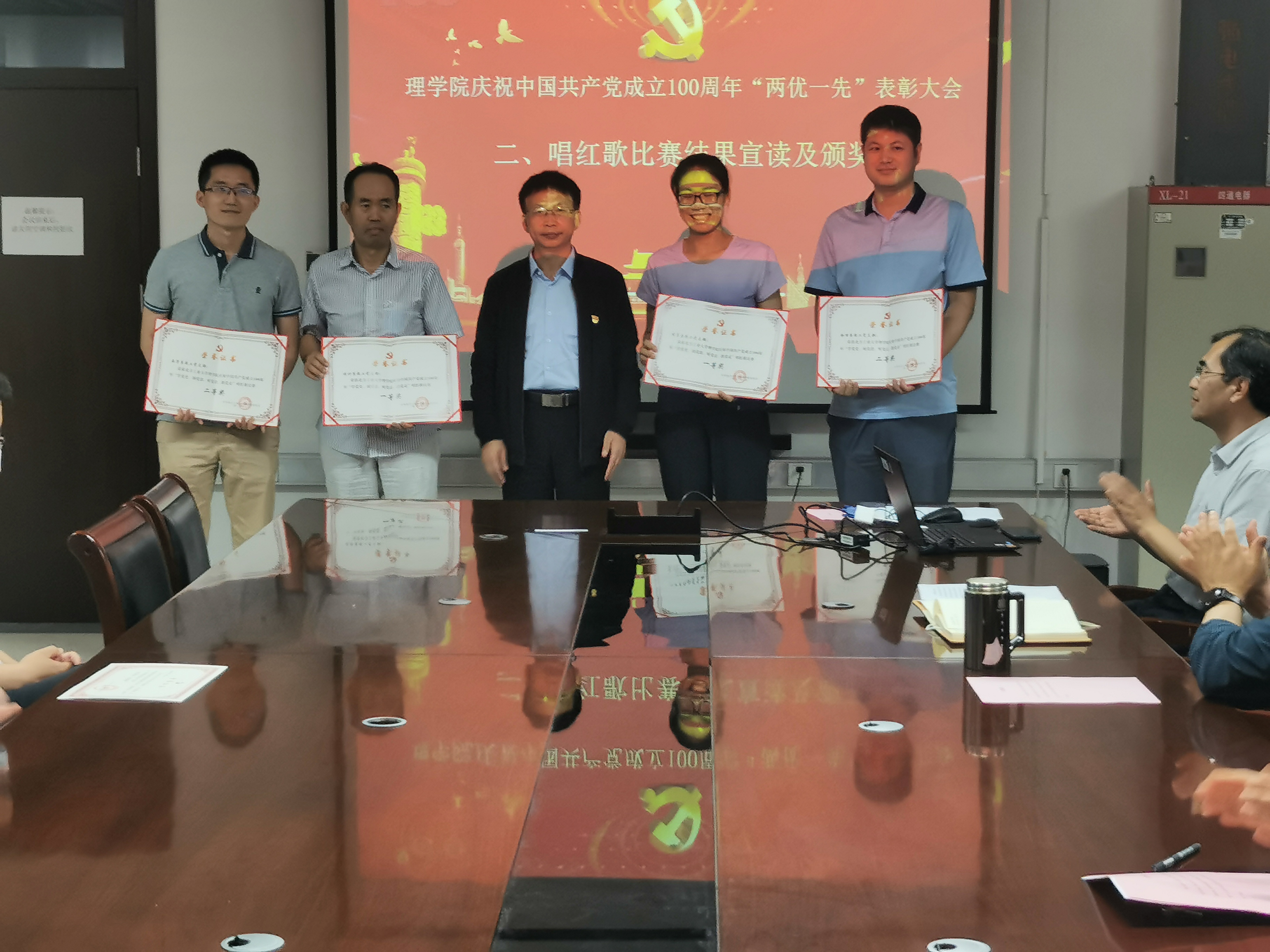 7月1日上午,taptap点点官网在博远楼805举行庆祝中国共产党成立100周年“两优一先”表彰大会。学院党委委员、学院领导班子全体、学院全体教工党员参加了会议。会议由taptap点点官网党委副书记李冱岸主持。