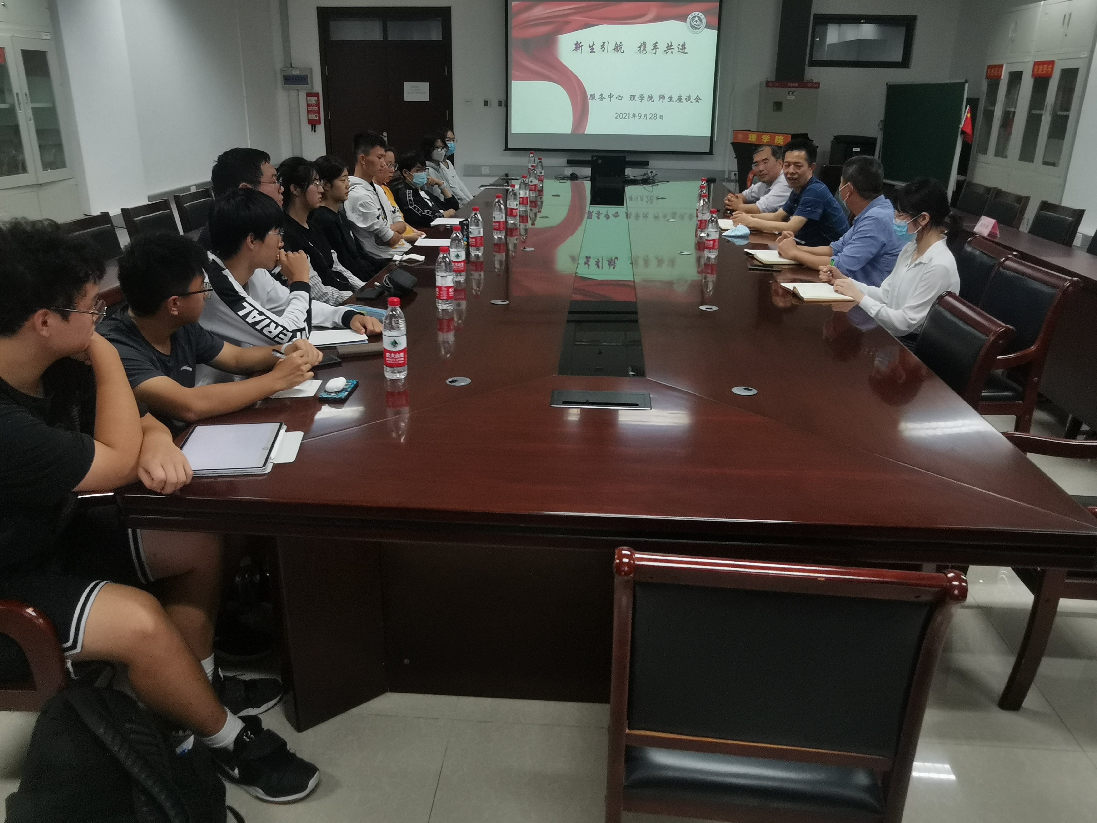 9月28日下午,服务中心党委书记张加强、总经理助理王群营等一行3人到taptap点点官网参加“新生引航、携手共进”座谈会。taptap点点官网新生辅导员及新生各班代表参加了座谈,会议由taptap点点官网党委副书记李冱岸主持。