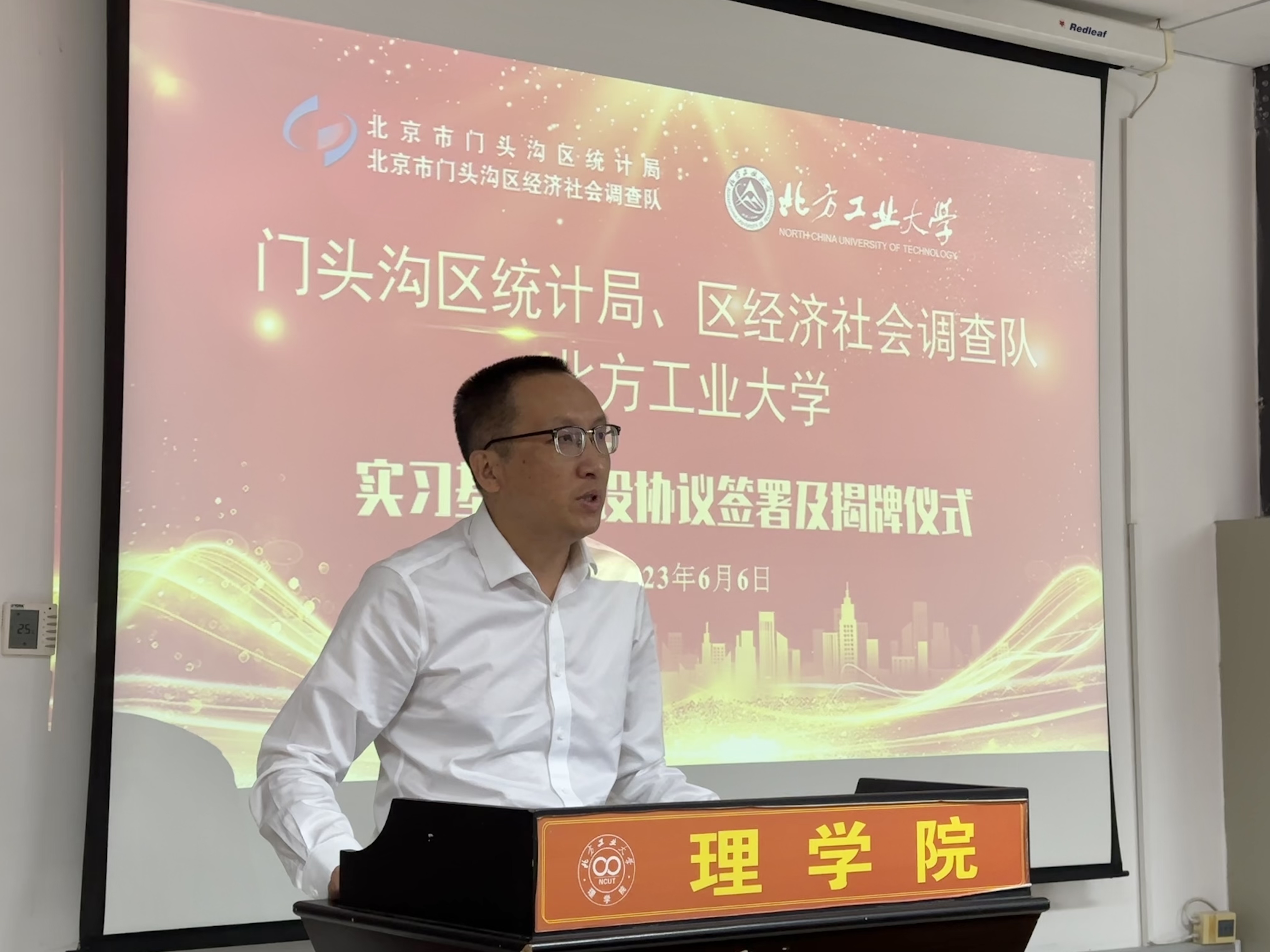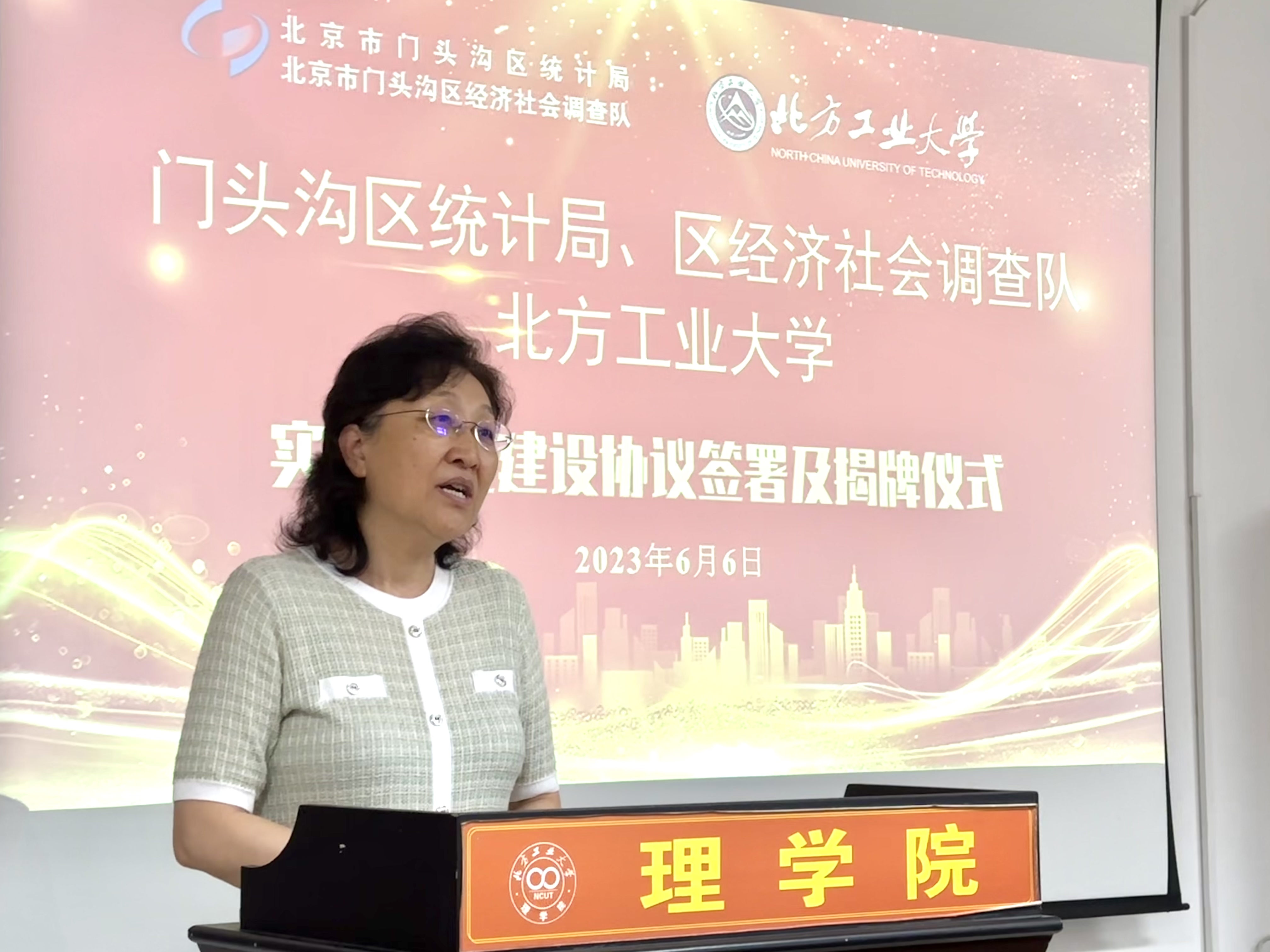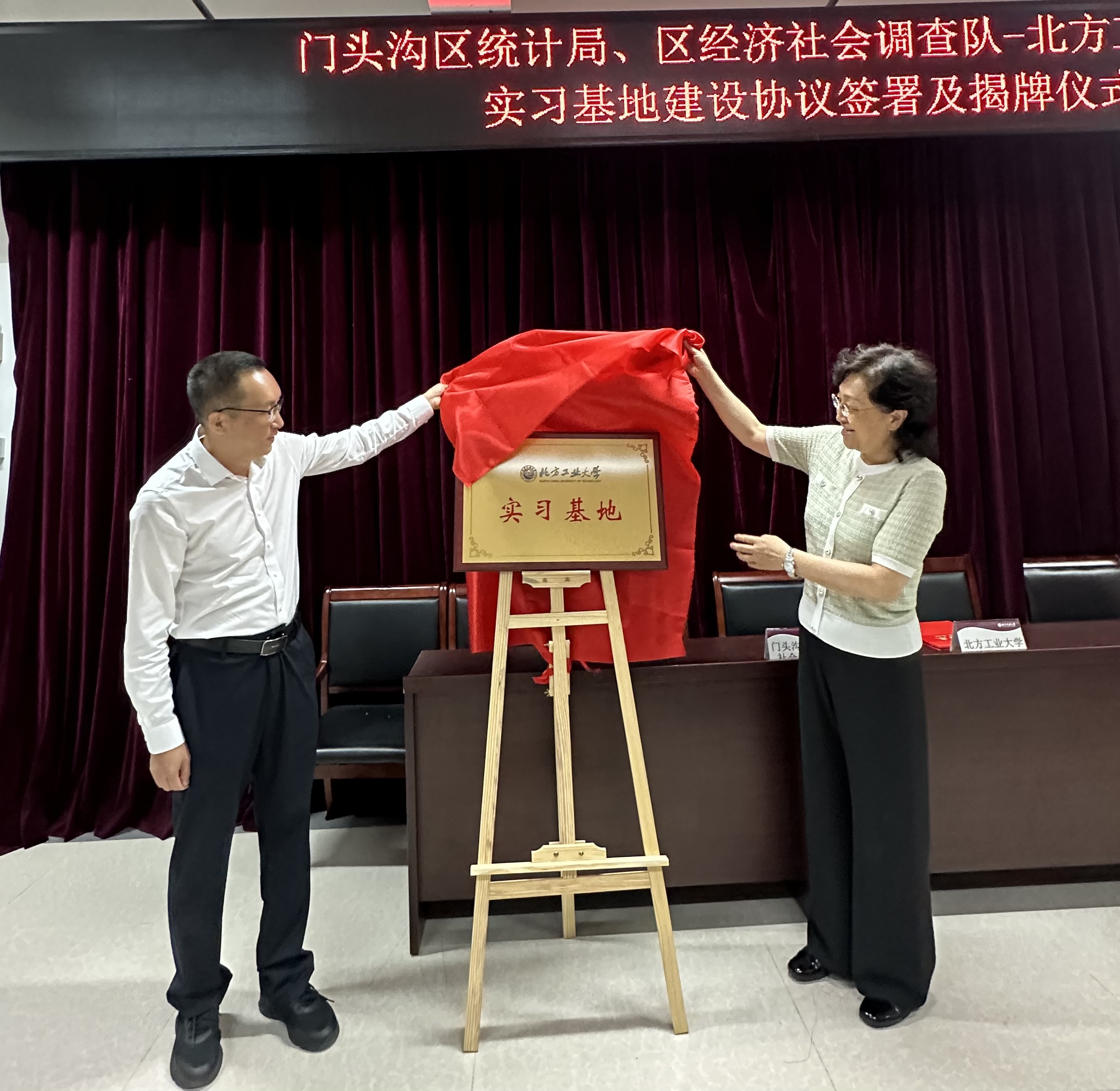 6月6日下午,北京市门头沟区统计局党组书记、局长谢晓东,北京市门头沟区统计局党组副书记、调查队队长宋长江、北京市门头沟区统计局党组成员、三级调研员王荣敏等一行15人莅临taptap点点官网,与taptap点点官网共商区校合作,携手发展事宜,双方共同签署了校外实习基地建设协议,并举行了实习基地揭牌仪式。taptap点点官网党委常委、副校长栗苹,taptap点点官网班子成员、统计学系全体教师参加了仪式。仪式由taptap点点官网党委副书记、院长李冱岸主持。