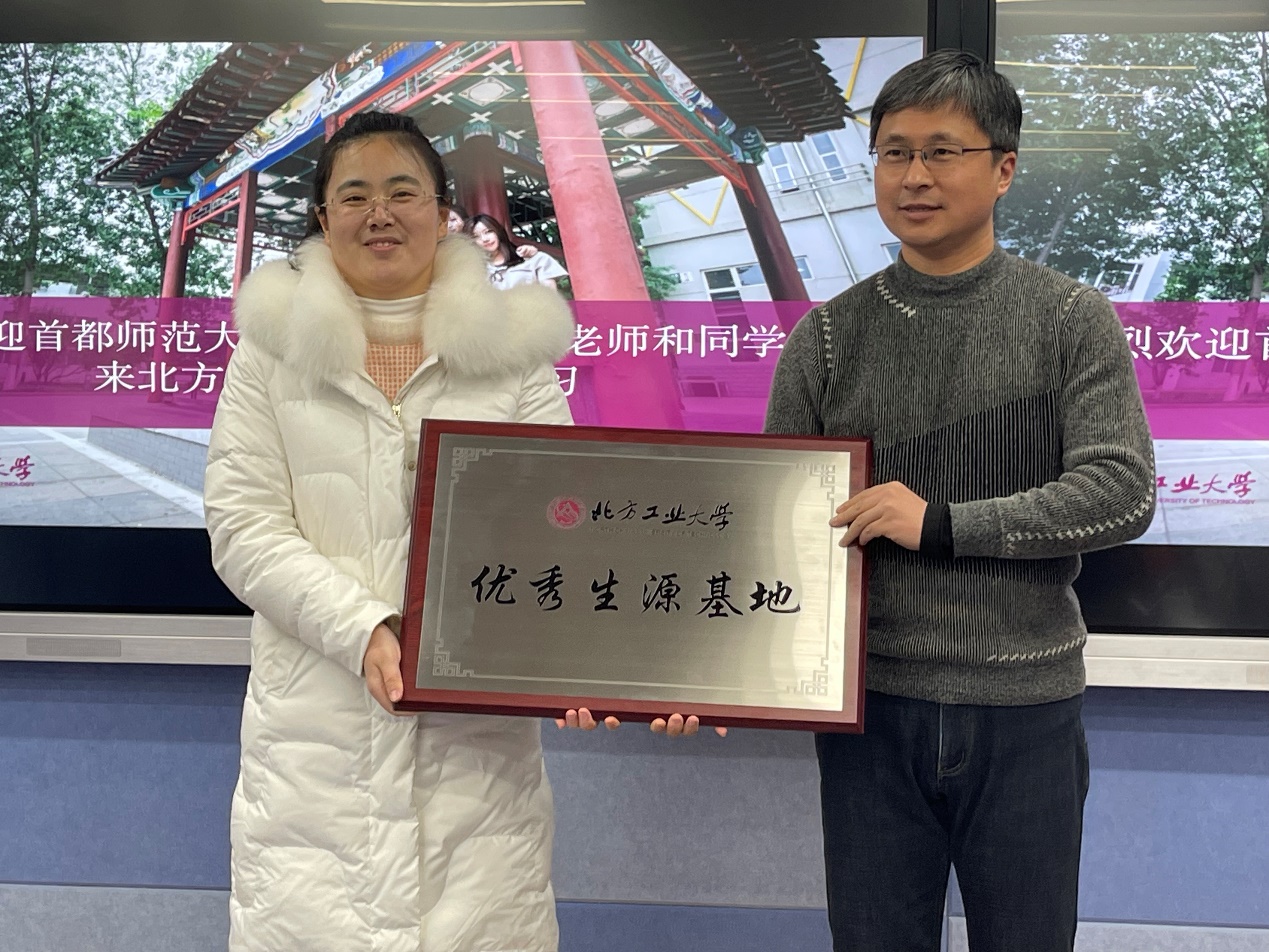参观结束后,举行了优秀生源基地授牌仪式。招生就业处副处长王宏波代表学校授予首都师范大学附属丽泽中学为“taptap点点官网优质生源基地”牌匾。