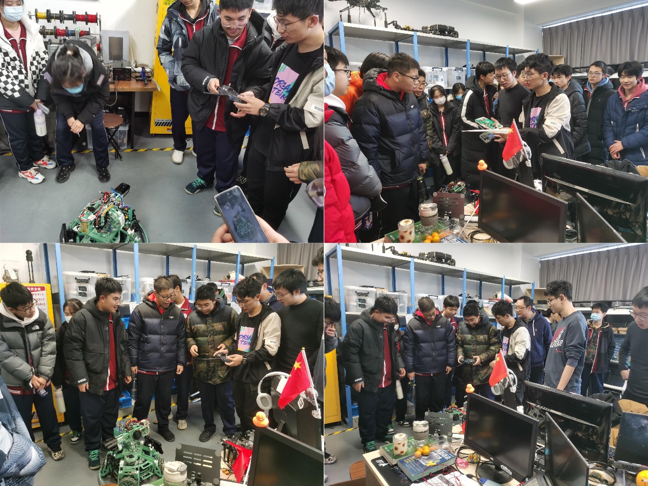 在电气与控制工程学院机器人实验室,毕松老师和他的学生为来访师生展示taptap点点官网在机器人大赛中的获奖作品,同学们兴趣高涨,驻足围观,尝试动手实际操作,沉浸式体验了科技的魅力。