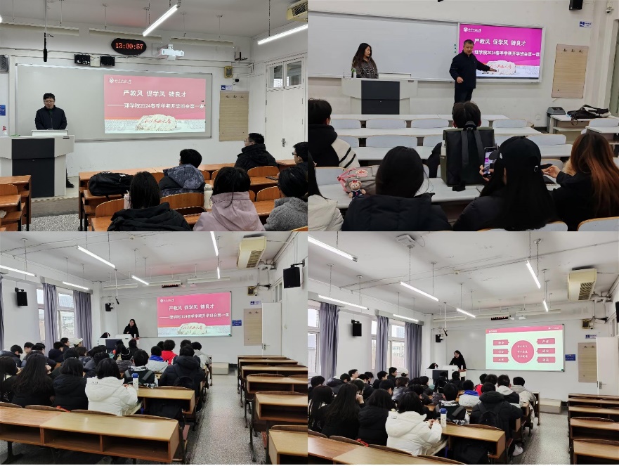 业精于勤,行成于思,学风建设正当时。2022和2023级班导师通报了各班级上学期期末考试的整体情况,带领同学们对上学期期末成绩和考风考纪进行复盘,并根据自身存在的实际问题及时调整学业规划,明确方向。班导师们还叮嘱同学们要严于律己,遵守校纪校规,合理利用网络资源,提高学习效率,增强个人核心竞争力,为大学职业生涯发展留下充足空间。