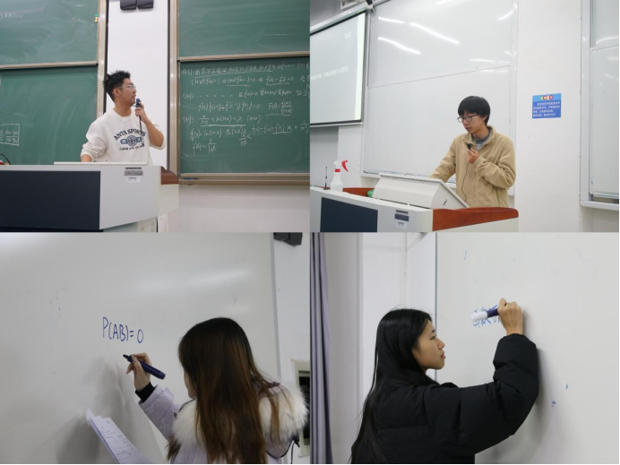 “学霸讲堂”作为学风建设的重要一环,着力于营造互帮互鉴的学术氛围。活动组织各年级优秀学子,围绕课程重点难点进行精准辅导。在大一年级中,信科专业冷思聪同学讲解了《数学分析》中的反证法与放缩技巧,统计专业张子谦同学解析了《线性代数》中的拉普拉斯展开式;大二年级中,统计专业柏晨丽同学系统梳理了《概率论》的知识体系,信科专业李云舒同学则深入讲解了函数可微性的典型题型及解法。系列分享内容与课堂教学同频共振,针对性强,加深了同学们对专业知识的理解与运用能力。