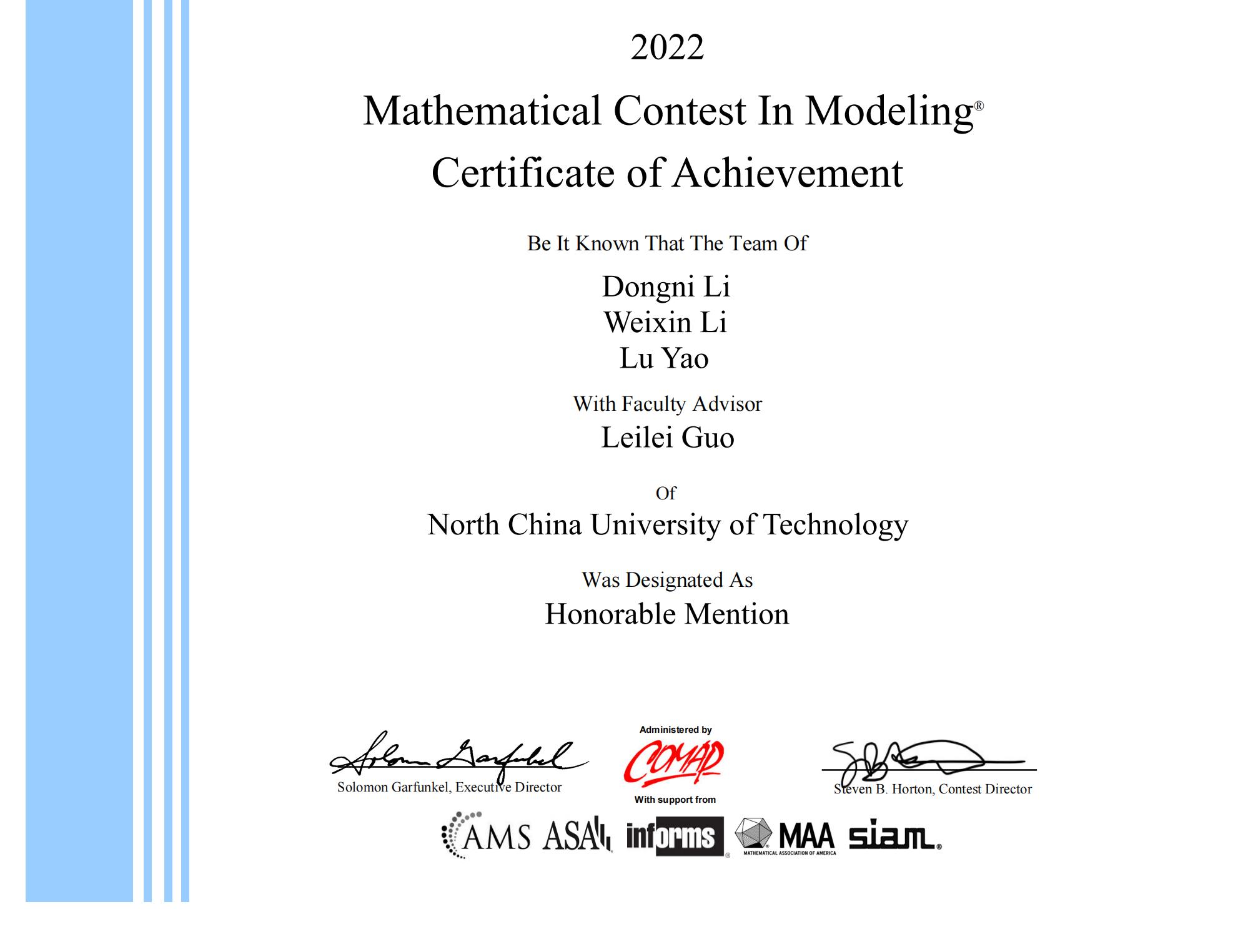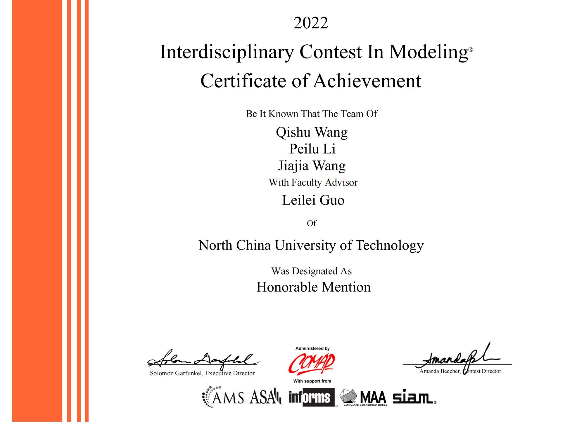近日,由美国数学及其应用联合会主办的2022年国际大学生数学建模竞赛成绩揭晓。taptap点点官网有14个代表队参赛,获得二等奖(Honorable Mention)5项(15人)。