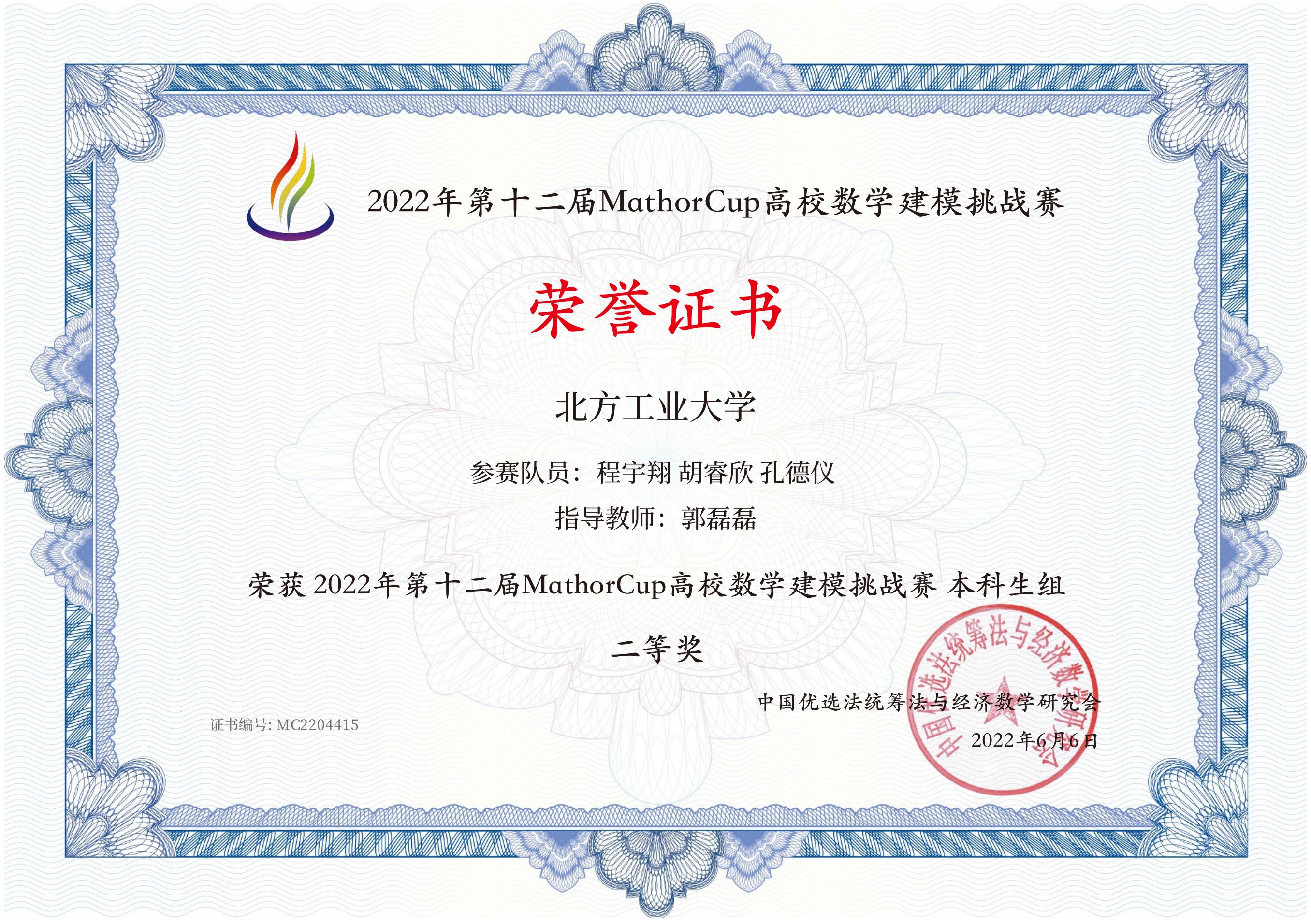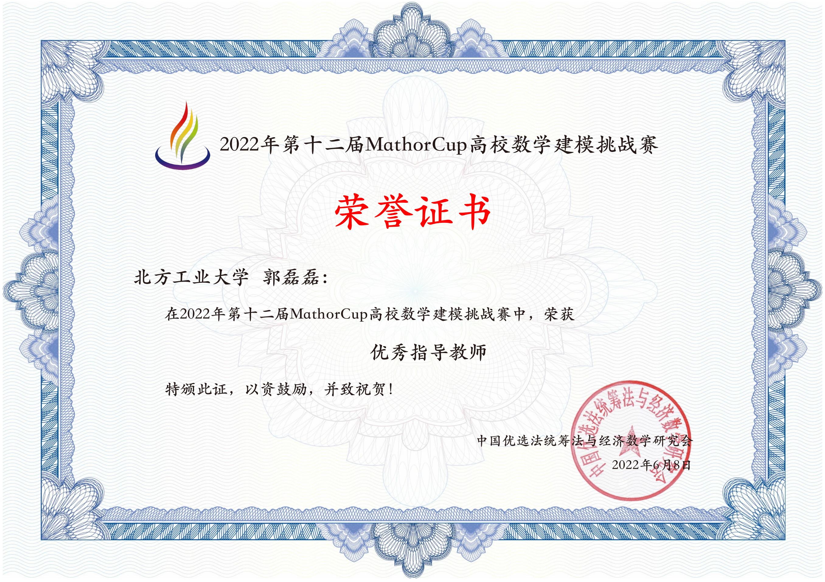 近日,2022年第十二届MathorCup高校数学建模挑战赛成绩揭晓。taptap点点官网24个代表队参赛,共获得一等奖1项(3人),二等奖3项(9人),三等奖8项(24人)。taptap点点官网被评为“优秀组织单位”,指导教师郭磊磊被评为“优秀指导教师”。