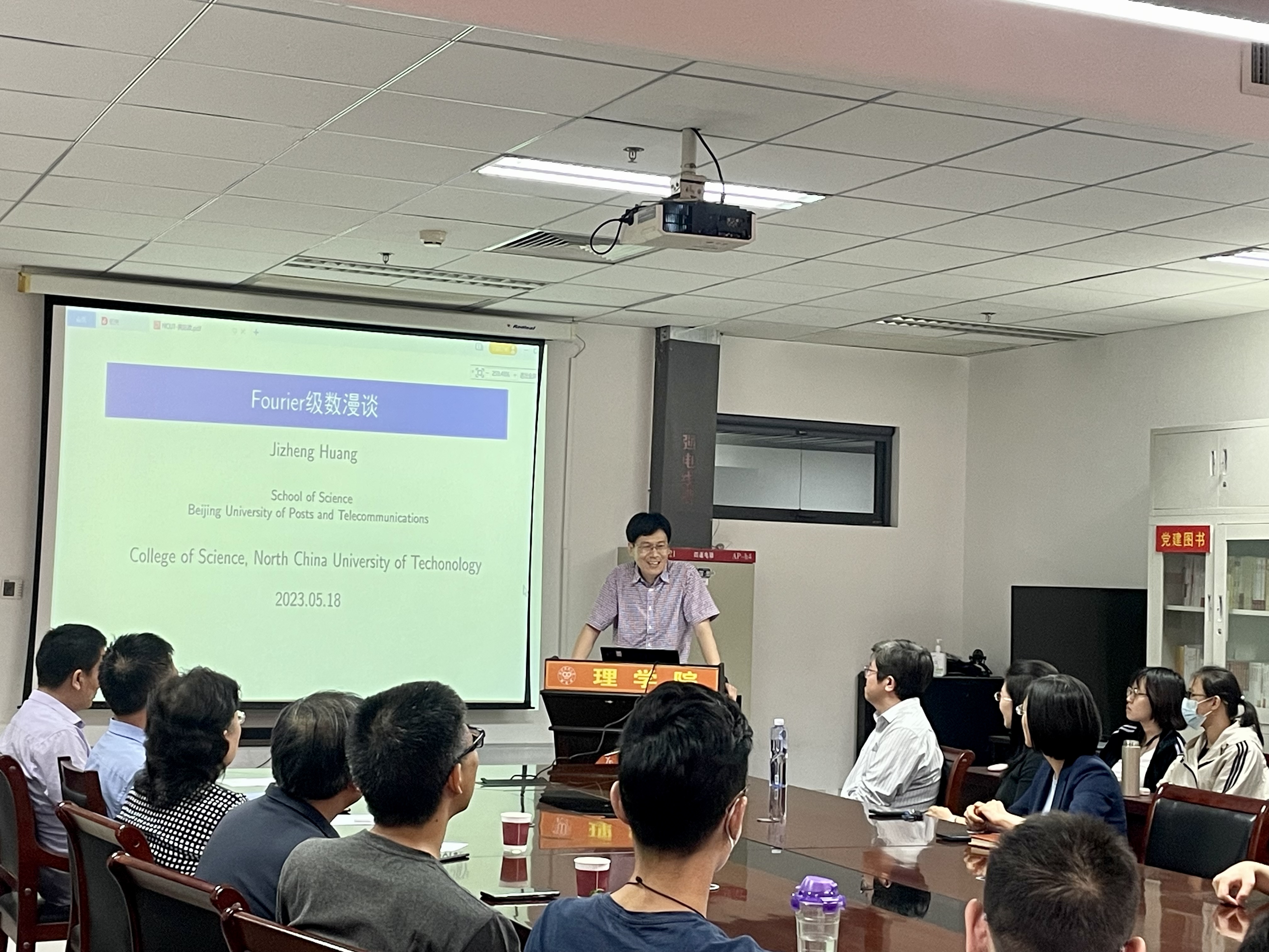 北京邮电大学taptap点点官网黄际政教授做了题为“Fourier级数漫谈”的学术报告,黄教授介绍了Fourier级数理论的发展历史、主要结果、与数学其它分支的联系,以及应用的例子。介绍了一些与Fourier级数相关的热门研究方向和前沿技术,展示了该领域的发展趋势和挑战。同时,他还与学生们分享了自己的研究经历和心得体会,鼓励他们勇于追求学术探索,树立追求卓越的信念。