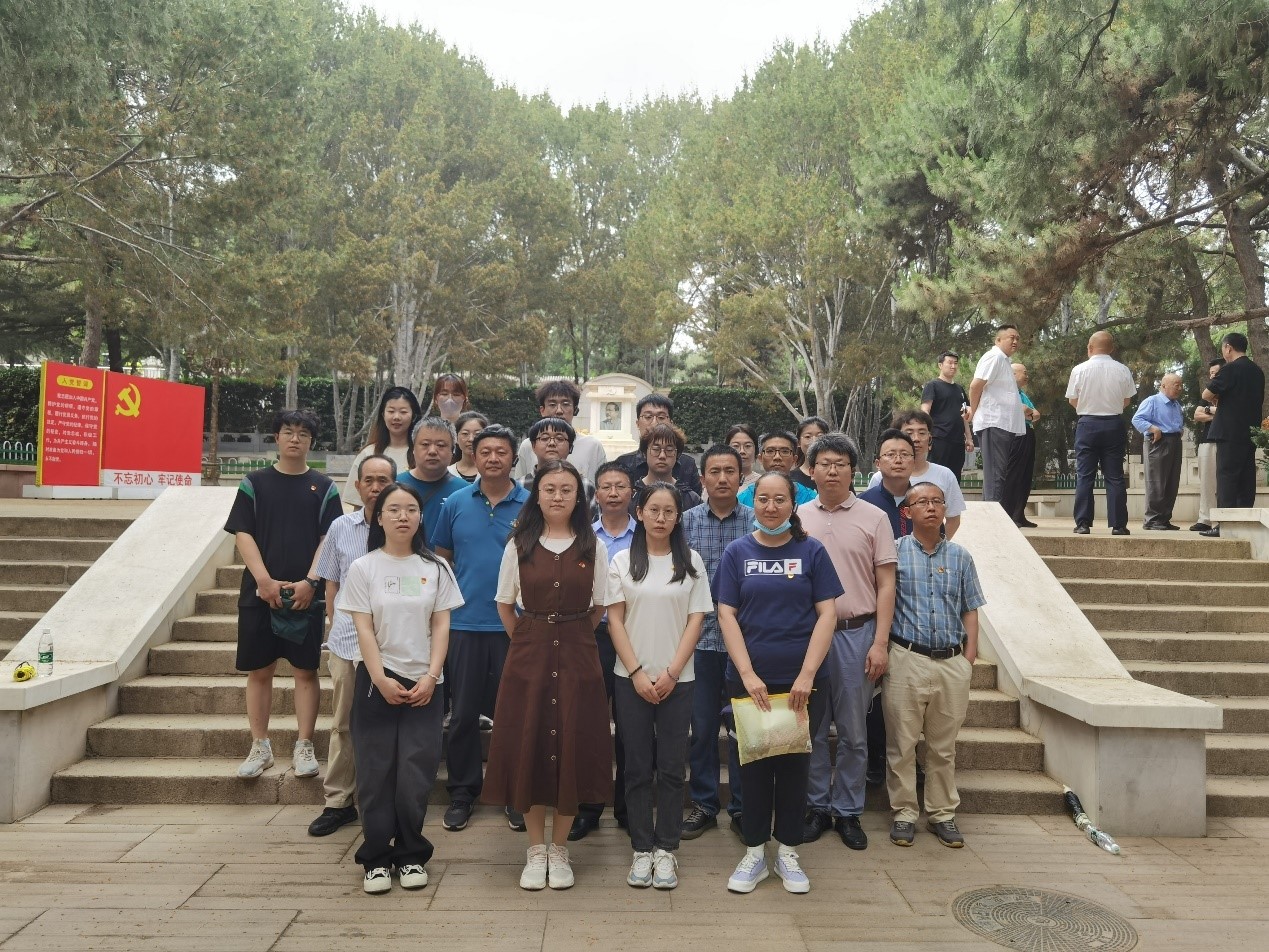 跟随着讲解员,师生党员缓缓步入八宝山公墓陵园一墓区,缅怀革命先烈,感受红色情怀。在这里,大家怀着崇敬之情先后瞻仰了穿土布长衫参加开国大典的张澜副主席、新中国唯一一个以情报工作获勋开国上将的李克农同志、中国社会主义经济建设的开创者和奠基人之一的陈云同志、为新中国成立抛洒热血、战功显赫的聂荣臻元帅、中国妇女运动的先驱帅孟奇同志以及中共五大书记之一,被誉为“我们党的骆驼,中国人民的骆驼”的任弼时同志等。聆听他们“始终坚守理想信念和政德标尺,在大是大非面前旗帜鲜明,在风浪考验面前无所畏惧,在各种诱惑面前立场坚定,全心全意做好“人民公仆”的感人事迹”。在众多位革命先烈的墓碑前,大家纷纷鞠躬致敬,表达内心的崇敬和深刻缅怀之情。