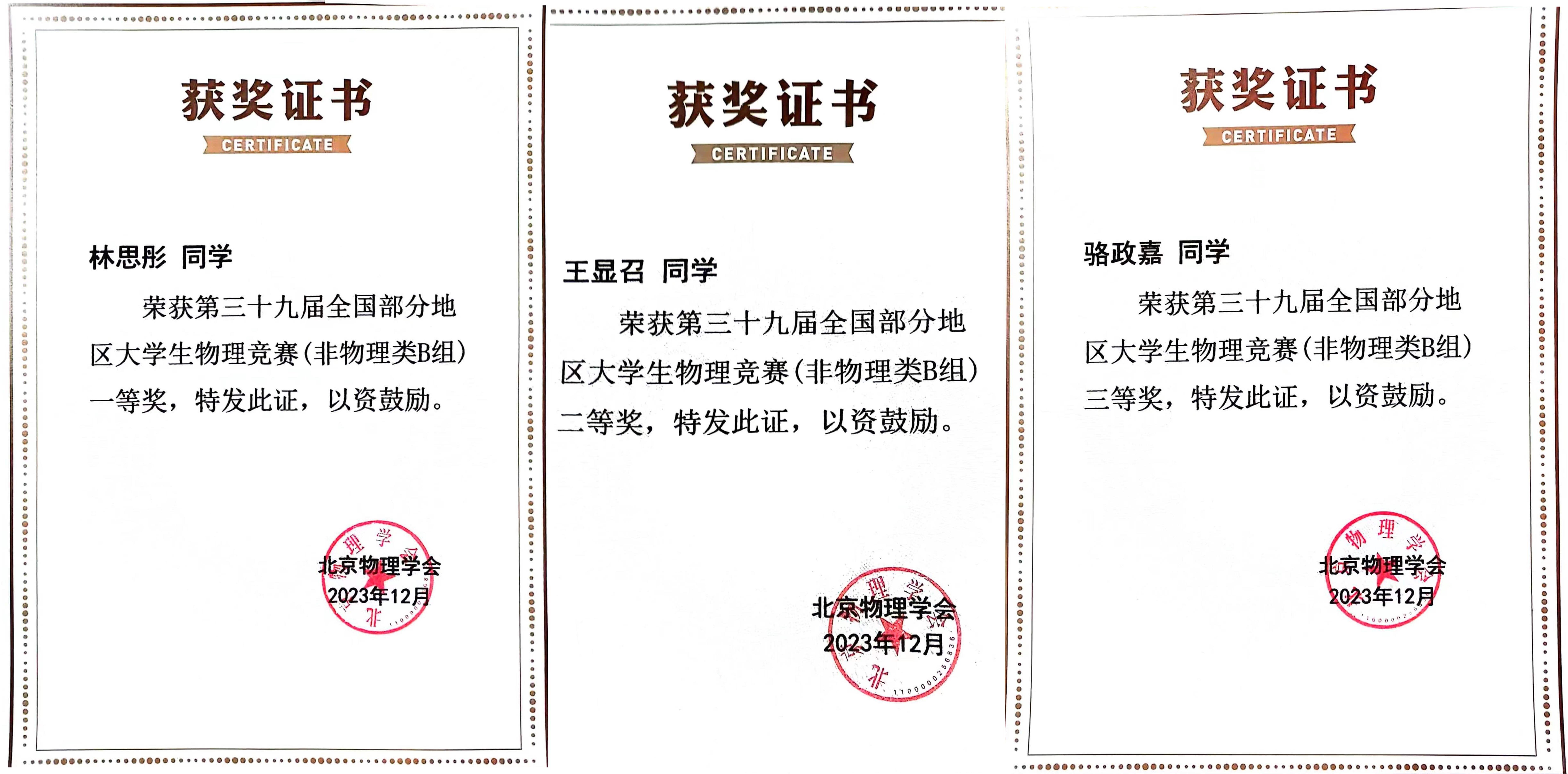 2023年第39届全国部分地区大学生物理竞赛于12月3日圆满结束。taptap点点官网再次取得优异成绩,并蝉联团体奖。本次竞赛taptap点点官网共有46人获奖,其中一等奖10名、二等奖15名、三等奖21名,在同类院校中名列前茅。
